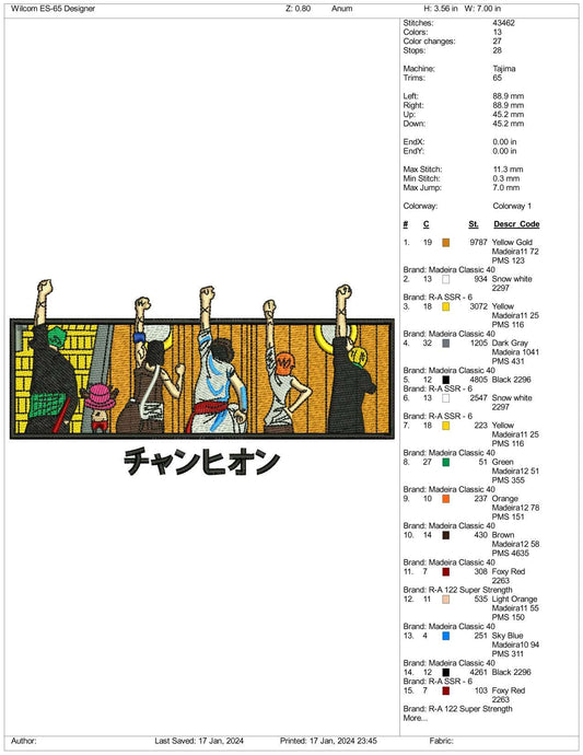 Archivos de diseño de bordado de Roronoa Zoro - 3 tamaños