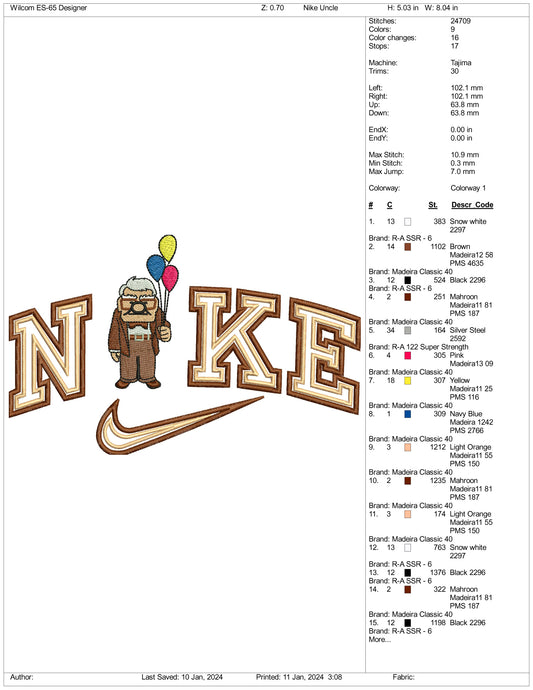 Archivos de diseño de bordado Nike Old Carl Fredricksen (3 tamaños)