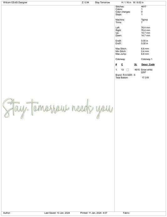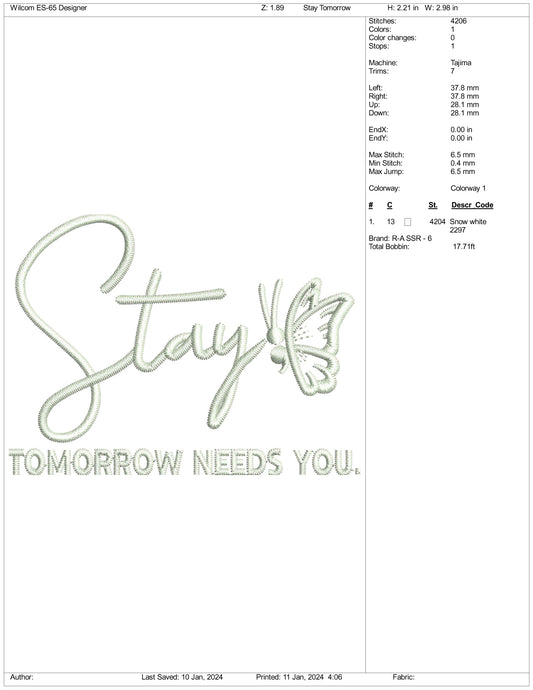 Archivos de diseño de bordado Stay Tomorrow Needs You - 3 tamaños