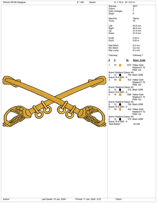 Archivos de diseño de bordado de espadas cruzadas - 3 tamaños