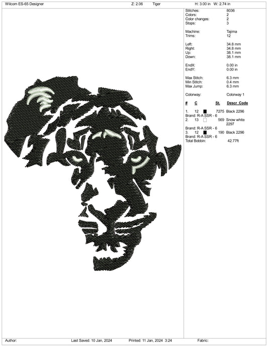Archivos de diseño de bordado de mapa de tigre - 3 tamaños