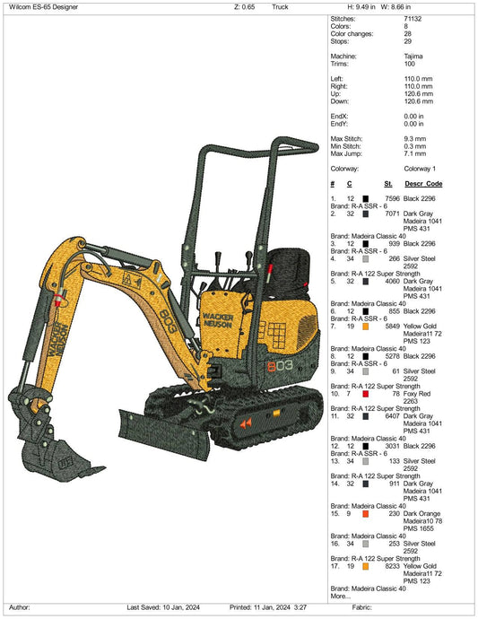 Archivos de diseño de bordado de máquina de excavadora - 3 tamaños