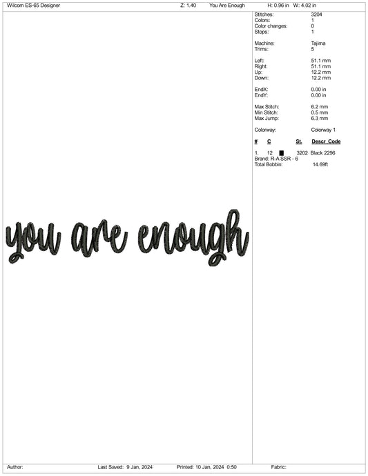 Archivos de diseño de bordado "Eres suficiente" - 3 tamaños