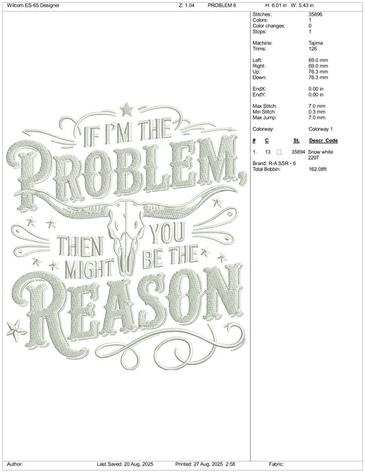 If I'm The Problem Embroidery Design Files - 3 Size's