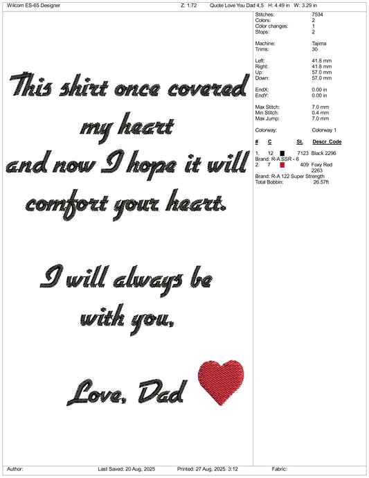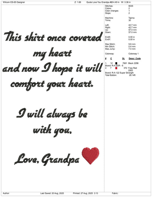 This Shirt Once Covered Love Grandpa Embroidery Design Files - 3 Size's