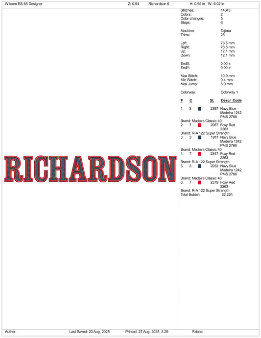Richardson Embroidery Design Files - 3 Size's