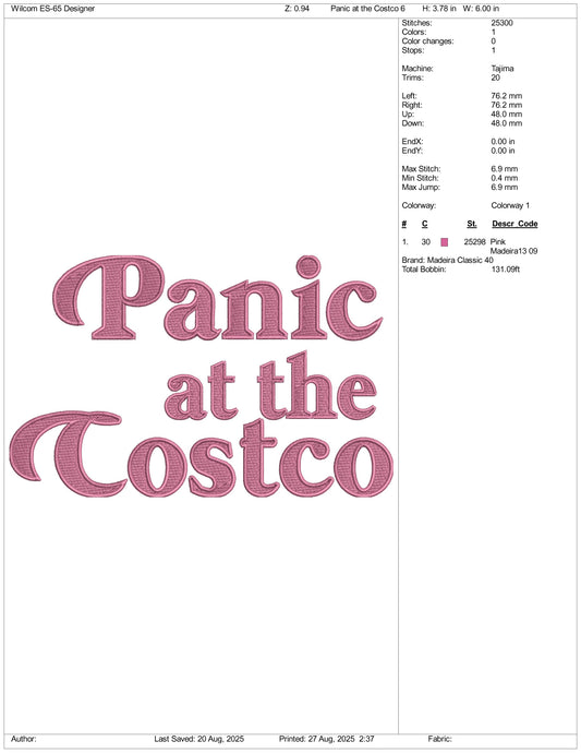 Panic at The Costco Embroidery Design Files - 3 Size's
