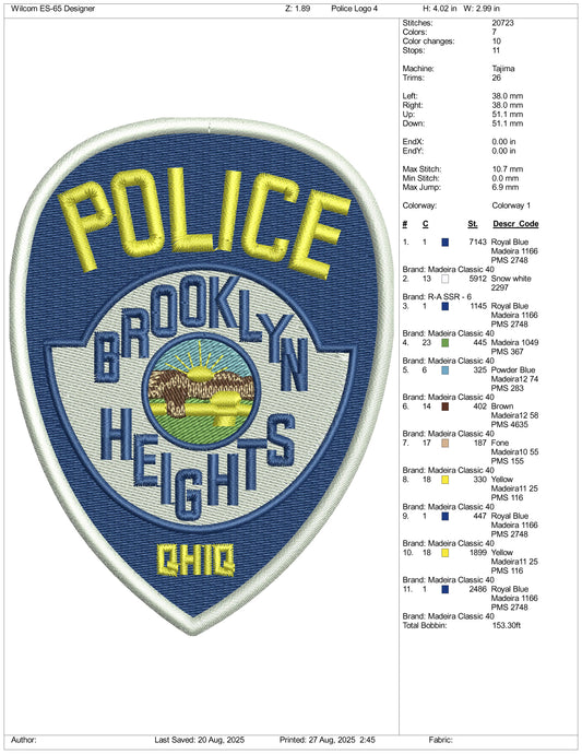 Police Brooklyn Heights Badge Embroidery Design Files - 3 Size's