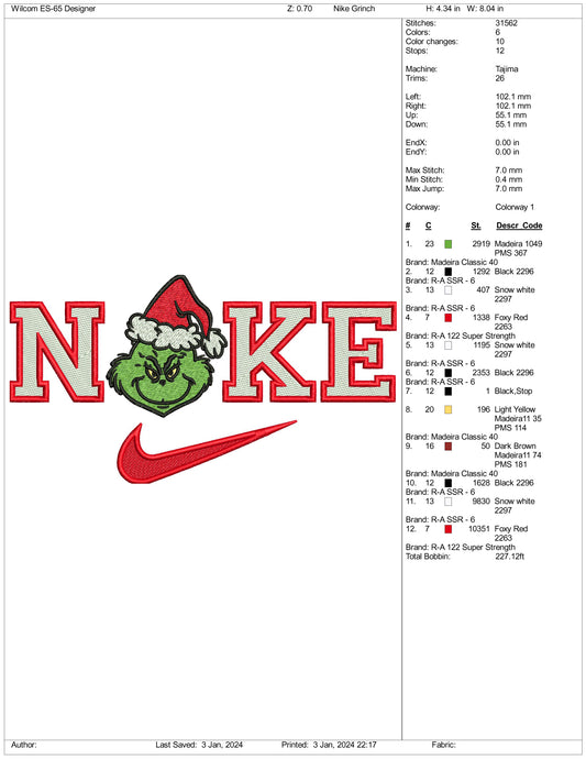 Archivos de diseño de bordado Nike de Lady Grinch (3 tamaños)Precio habitual $6.99 USDPrecio habitualPrecio unitario / por-