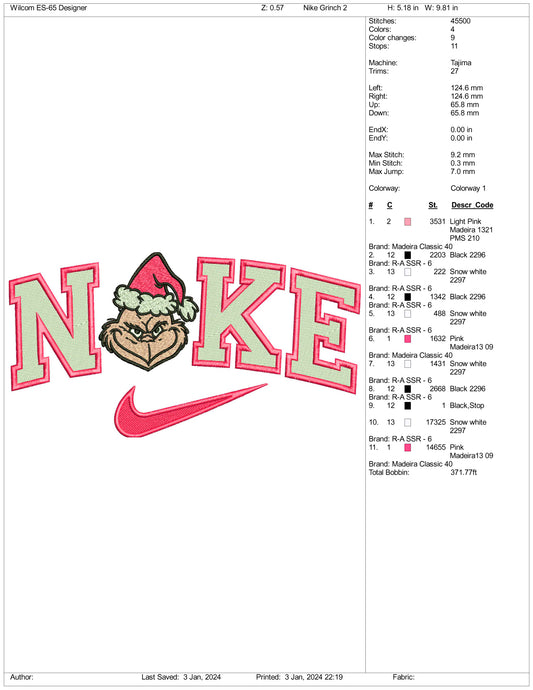 Archivos de diseño de bordado Nike versión rosa del Grinch (3 tamaños)Precio habitual $6.99 USDPrecio habitualPrecio unitario / por-
