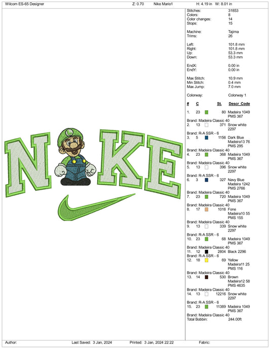 Archivos de diseño de bordado Nike Luigi Super Mario - 3 tamañosPrecio habitual $6.99 USDPrecio habitualPrecio unitario / por-