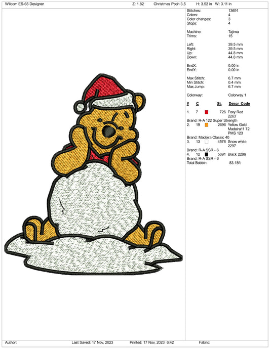 Archivos de diseño de bordado de Santa Pooh - 3 tamañosPrecio habitual $6.99 USDPrecio habitualPrecio unitario / por-
