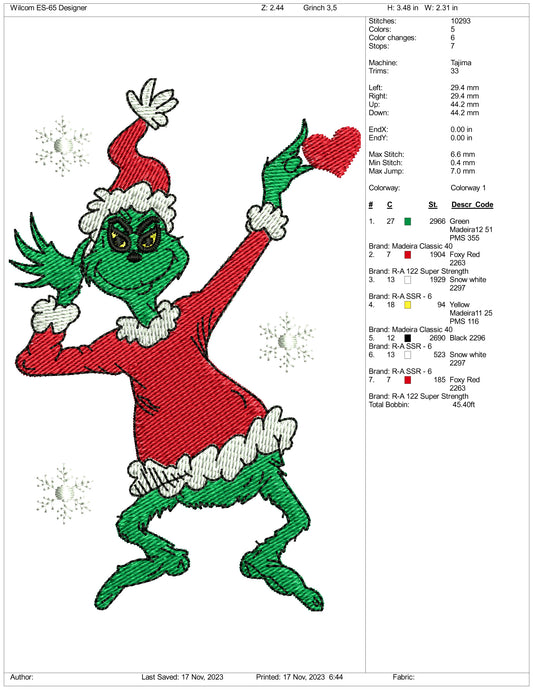 Archivos de diseño de bordado de Santa Grinch v6 - 3 tamañosPrecio habitual $6.99 USDPrecio habitualPrecio unitario / por-