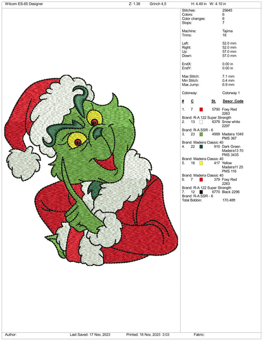 Archivos de diseño de bordado de Santa Grinch v3 - 3 tamañosPrecio habitual $6.99 USDPrecio habitualPrecio unitario / por-