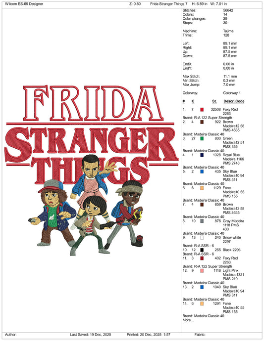 Frida Stranger Things Embroidery Design Files - 3 Size's
