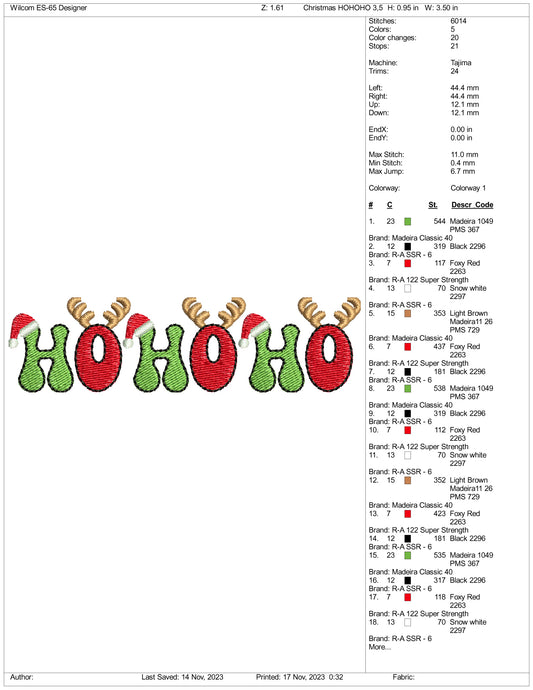 Archivos de diseño de bordado "Christmas Ho Ho Ho v1" (3 tamaños)