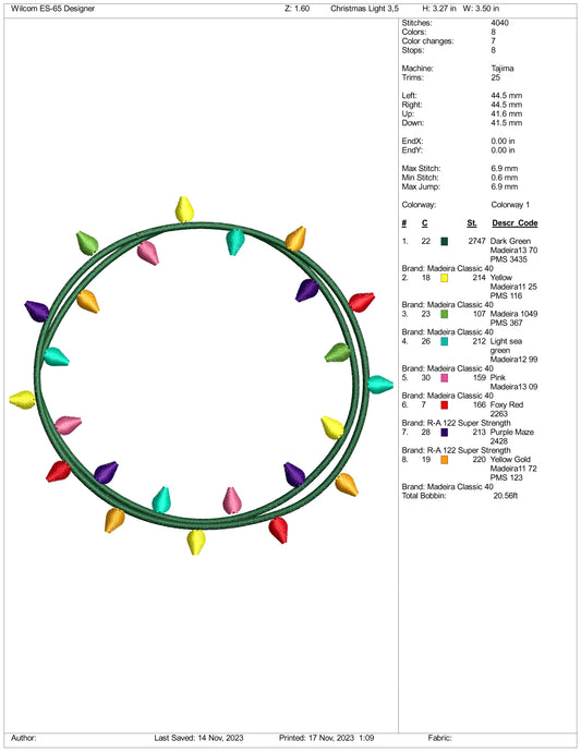 Archivos de diseño de bordado de luces navideñas v2 - 3 tamaños