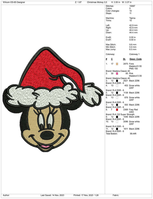 Archivos de diseño de bordado de Mickey Mouse y Papá Noel para Navidad (3 tamaños)