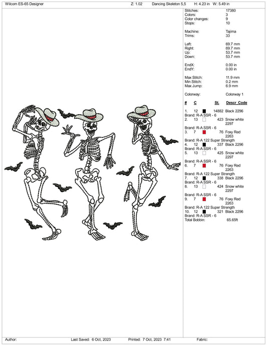 3 esqueletos danzantes v3 bordado - 4 tamaños