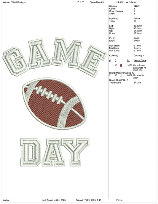 Archivos de diseño de bordado para el día del juego: 3 tamaños