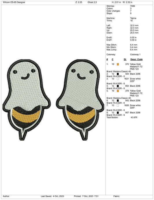 2 archivos de bordado de abeja fantasma - 3 tamaños