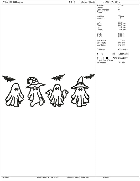 4 archivos de diseño de bordado de fantasmas - 3 tamaños