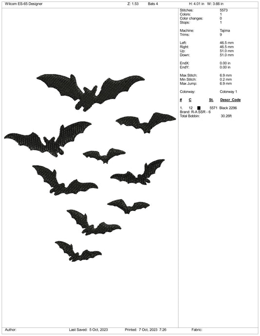 Archivos de diseño de bordado de murciélago de Halloween - 4 tamaños