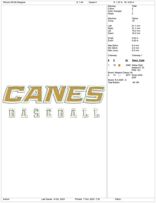 Archivos de diseño de bordado de bastones de béisbol - 3 tamaños