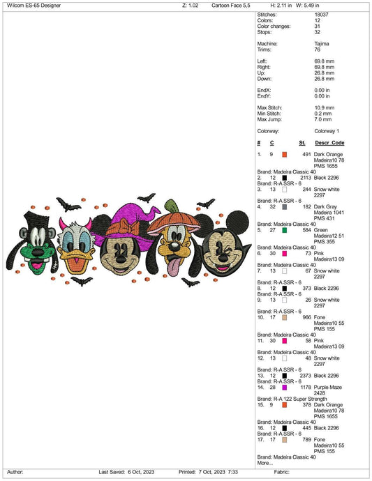 Archivos de diseño de bordado de caras de Disney para Halloween (4 tamaños)