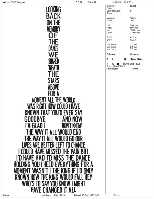 Archivos de diseño de bordado de guitarra - 3 tamaños