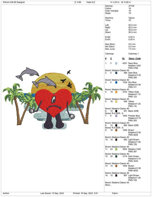 Archivos de diseño de bordado de corazón triste - 3 tamaños