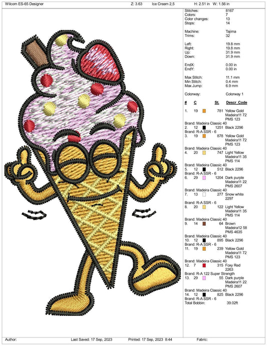 Archivos de diseño de bordado de helado feliz - 3 tamaños