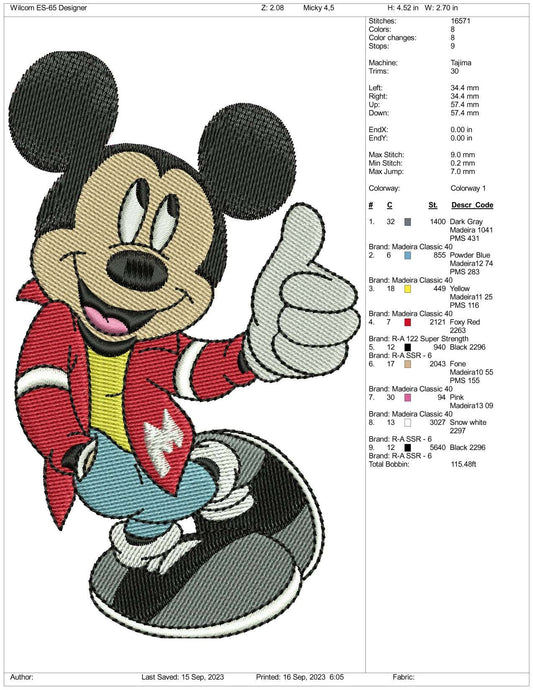 Archivos de diseño de bordado de Micky Mouse - 3 tamaños