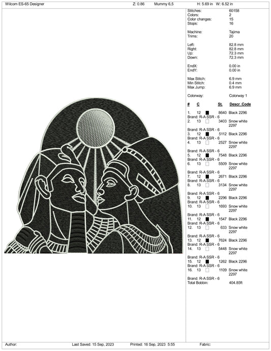 Archivos de diseño de bordado del faraón Tutankamón (3 tamaños)