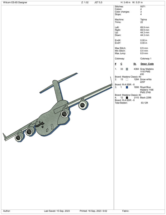 Archivos de diseño de bordado de Aero Plan - 3 tamaños