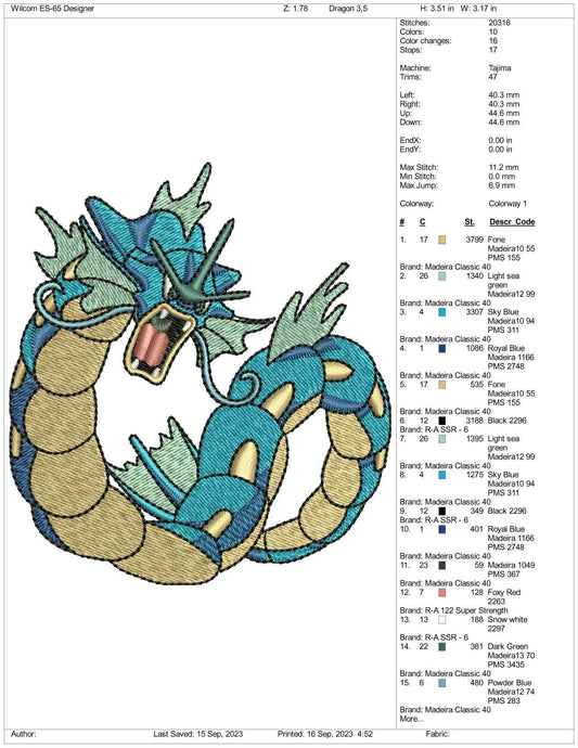 Archivos de diseño de bordado Gyarados - 3 tamaños