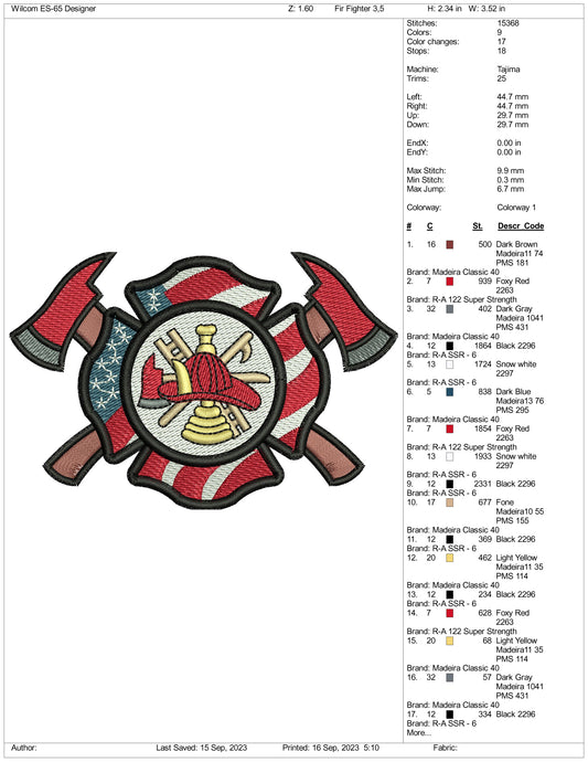 Archivos de diseño de bordado de la bandera de bomberos de EE. UU. (3 tamaños)