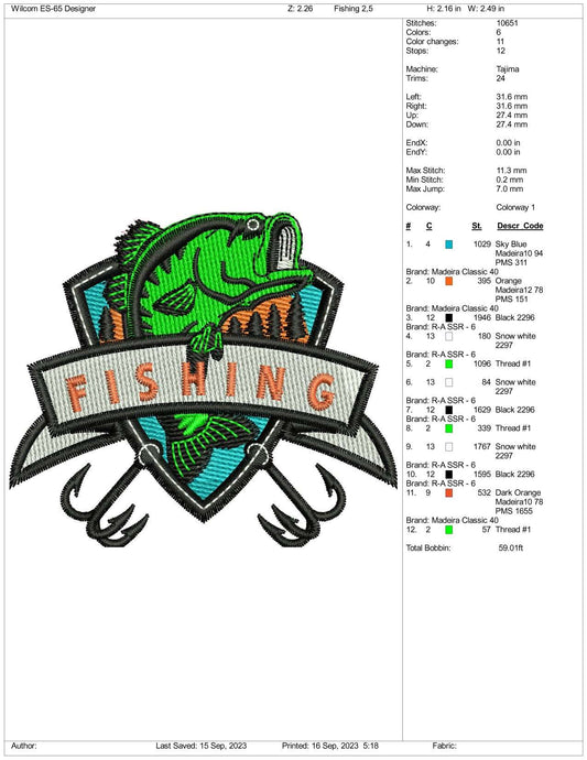 Archivos de diseño de bordado de pesca - 3 tamaños