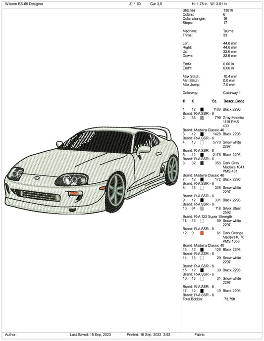 Archivos de diseño de bordado de Toyota Supra - 3 tamaños