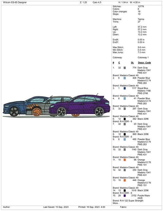 Archivos de diseño de bordado de 3 coches - 3 tamaños