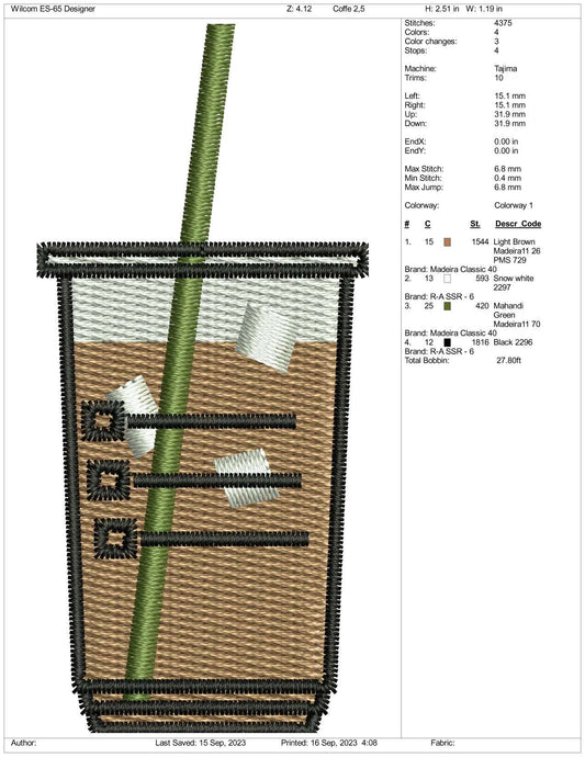 Archivos de diseño de bordado de café frío - 3 tamaños