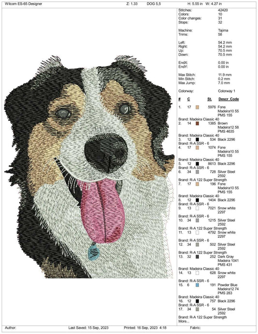 Archivos de diseño de bordado de pastor australiano (3 tamaños)
