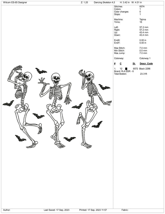 Bordado de 3 esqueletos danzantes - 3 tamaños