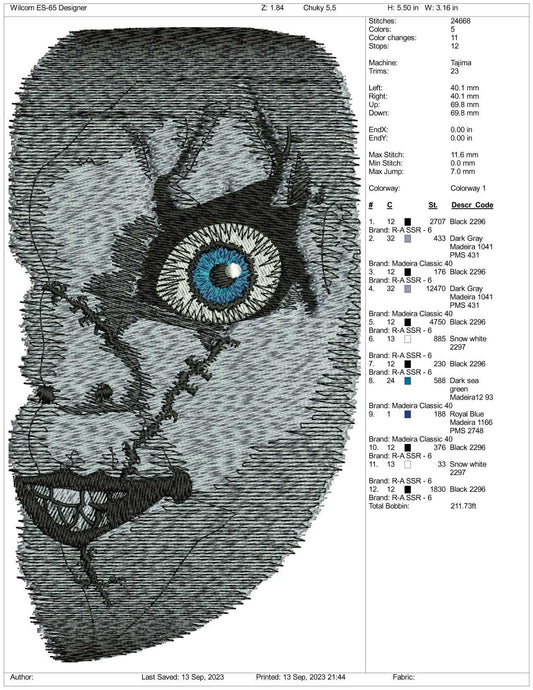 Archivos de diseño de bordado de media cara de Chucky Scary - 3 tamaños