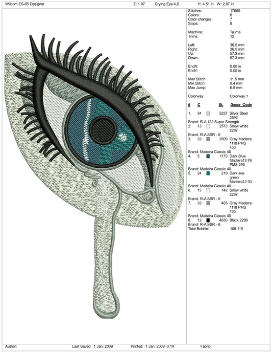 Archivos de diseño de bordado de lágrima triste - 3 tamaños