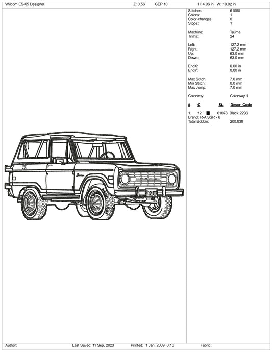 Archivos de diseño de bordado de arte lineal de Ford Bronco (3 tamaños)