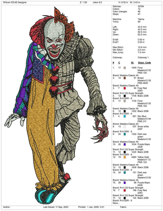 Archivos de diseño de bordado de payaso de Halloween - 3 tamaños