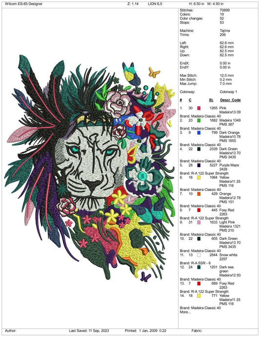 Archivos de diseño de bordado de león colorido - 3 tamaños
