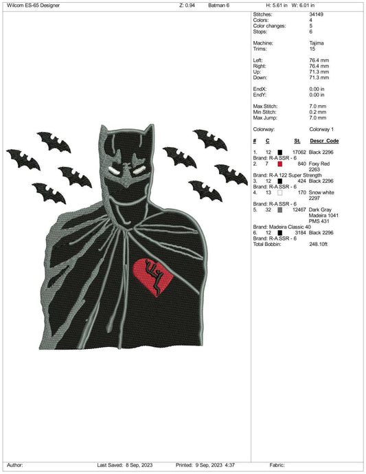 Archivos de diseño de bordado de Batman de corazón roto - 3 tamaños