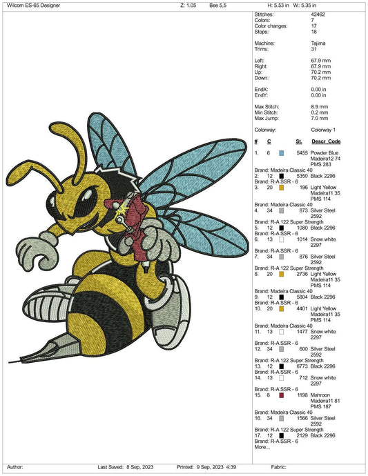 Archivos de diseño de bordado de abeja y avispón - 3 tamaños